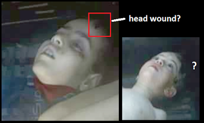Petri Krohn noted two more examples of boys with head/neck wounds and bruising. However, these don't appear as likely execution-related, and not fatal at all, that we see. These could be actual deaths from an explosion with unseen body wounds, injuries from some blast who were then gassed, or a coiple of things. Just hacked at a bit for effect, to help explain those other kids, who know?